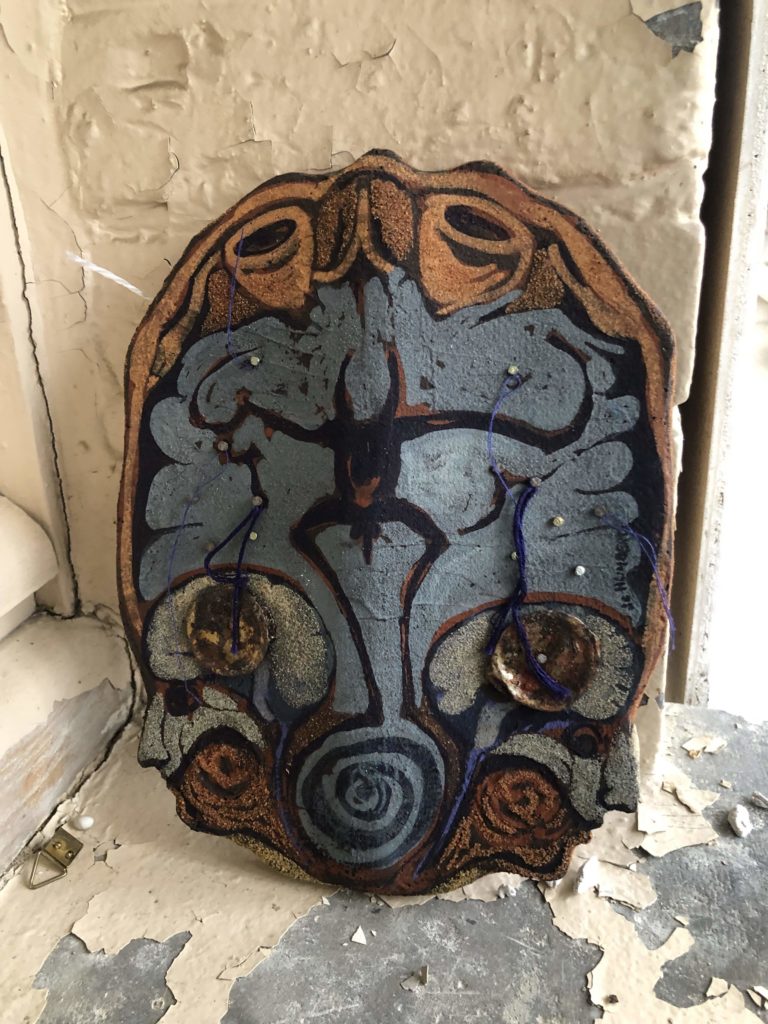 À défaut de pouvoir comprendre ce qu’il se passe dans la tête de mes personnages, je cherche à regarder ce qu’ils ont dans le ventre. Nous sommes scannés, radiographiés, décortiqués au microscope, tranchés en imagerie par résonance magnétique pour tenter de mieux nous connaitre. Mon univers s’est peuplé de personnages hybrides, mi-hommes mi-mantes, certains bicéphales le ventre ouvert, nu, marqué d’une griffure, d’une signature…ma signature ? Le corps devient un paysage intérieur avec ses artères, ses chemins de traverses, ses chemins buissonniers. Une cartographie fantaisiste où se croisent stomac, épithélium, rachis, enképhalos, médusa spinalis, capillaries. Je construis un monde parallèle où se télescope ma vie, ce que j’ai appris de mes parents, de mon passage aux Beaux-Arts de Paris, de ma curiosité des peuples non cartésiens où l’esprit n’est pas séparé du corps, où l’art fait un tout avec l’humain. En intégrant aussi des éléments extérieurs à la peinture, celle-ci devient peut-être un objet fétiche, absorbant mes peurs, mes inquiétudes pour me permettre d’acquérir une certaine sérénité.